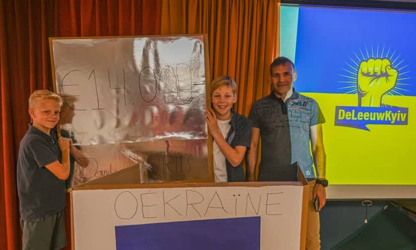 David en Maurits van basisschool de Kring in Oegstgeest organiseerden een sponsorloop en zamelden zo maar liefst 14.000 Euro in voor Stichting De Leeuw Kyiv! Het bedrag werd overhandigd aan voorzitter Guido van Engelen. Daarna hield hij nog een presentatie over het werk van de stichting en hoe wij alle ingezamelde hulpgoederen op hun bestemming bezorgen.