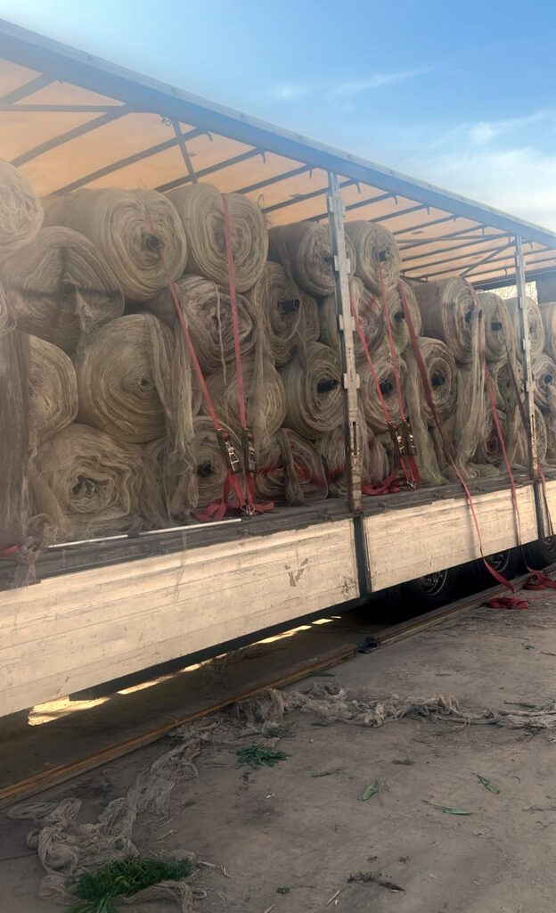 We verzamelen al een tijd afgedankte visnetten om Oekraïense posities te beschermen tegen russische drones. Maar nu hebben we een gouden vondst gedaan: ook in de bloembollenteelt worden enorme hoeveelheden netten gebruikt!