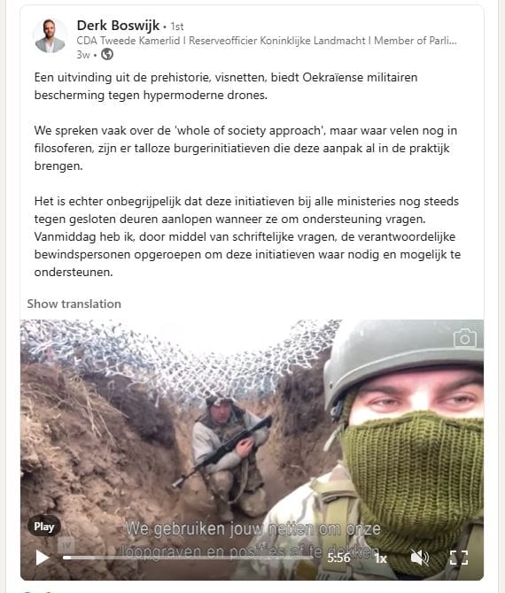 Naar aanleiding van het artikel in Trouw en de reportage van Een Vandaag over ons anti-dronenettenproject, heeft Derk Boswijk met ondersteuning van Jan Paternotte kamervragen ingediend.