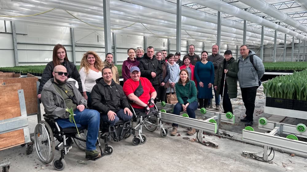 ‍Afgelopen weekend bezocht een groep zwaargewonde Oekraïense militairen, die in Nederland revalideert, Dutch Flora in Warmenhuizen. Op verzoek van de Nederlandse Ambassade in Kyiv, hielpen collega Arno Klijbroek en Kateryna Volianska van Netherlands for Ukraine in de organisatie van de rondleiding, die de soldaten inspiratie moet geven voor de volgende stap in hun leven. Ook zorgde het voor een dagje ontspanning bij de mannen die inzicht kregen in het hele groeiproces van de tulpen, tot het verpakken van de bossen tulpen aan toe. Ze zijn zeer dankbaar voor de hulp en steun die ze in Nederland krijgen. ‍NHNieuws deed verslag van het bezoek van de militairen.‍