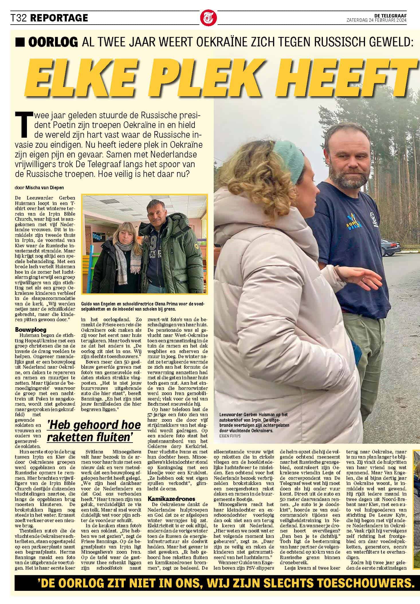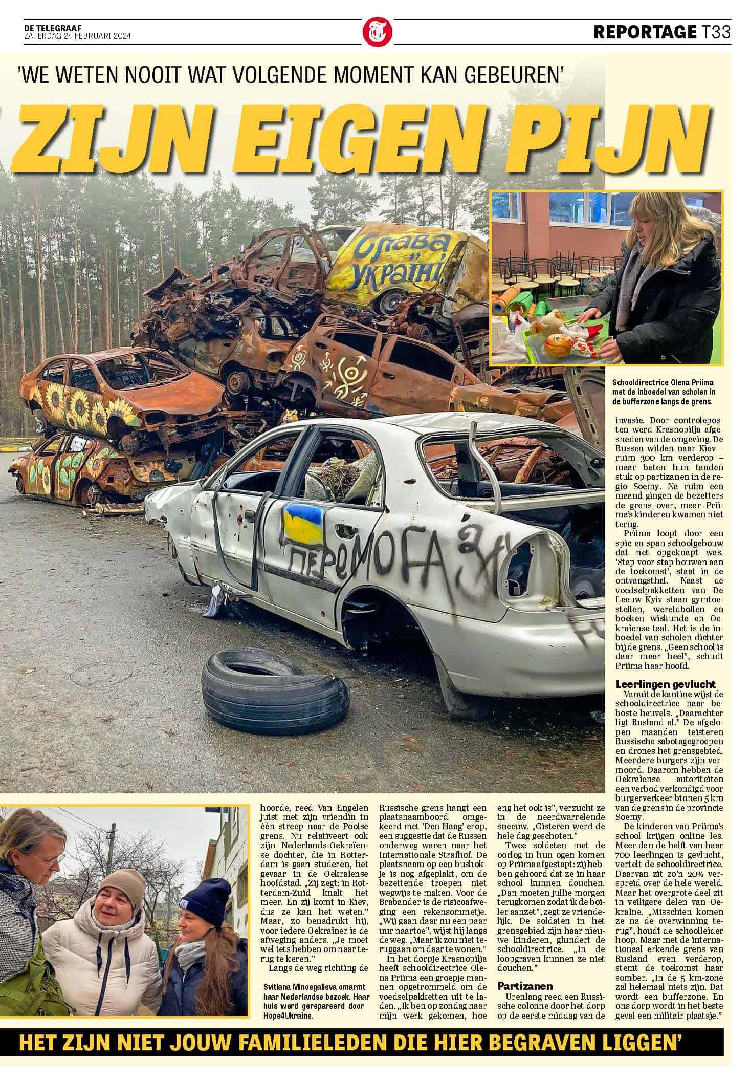 Op 24 februari publiceerde De Telegraaf een artikel over 2 jaar bezetting van Oekraïne door Rusland. Daarvoor sprak journalist Mischa van Diepen ook met Guido, en ging hij met hem op stap naar het dorpje Krasnopilja in Soemy oblast bij de Russische grens waar wij hulpgoederen afleverden. Zij spraken terplekke met een lokale schooldirecteur over de maanden van bezetting en de problemen waarmee de school te kampen heeft.